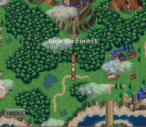 El jugador puede entrar en el bosque desde el inicio del juego en el Presente; sin embargo, Crono no puede entrar en el propio castillo. En la siguiente oportunidad que el jugador visita el bosque es en la Edad Media, siguiendo el rastro de Marle después de que ella fuese confundida con la Reina Lynne. Crono y Lucca vuelven a pasar a través del bosque para llegar a la Catedral de Manolia. Tras salvar a la reina, el equipo de Crono aparece directamente en el castillo, sin pasar por el bosque completo.