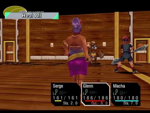Serge uses HealAll on the party