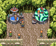 - After Marle agrees to watch Crono test the Telepods, it is possible for him to simply talk to her before being teleported. This prompts her to test the Telepods as if he had done so already. This is useful for swift playthroughs of the game.